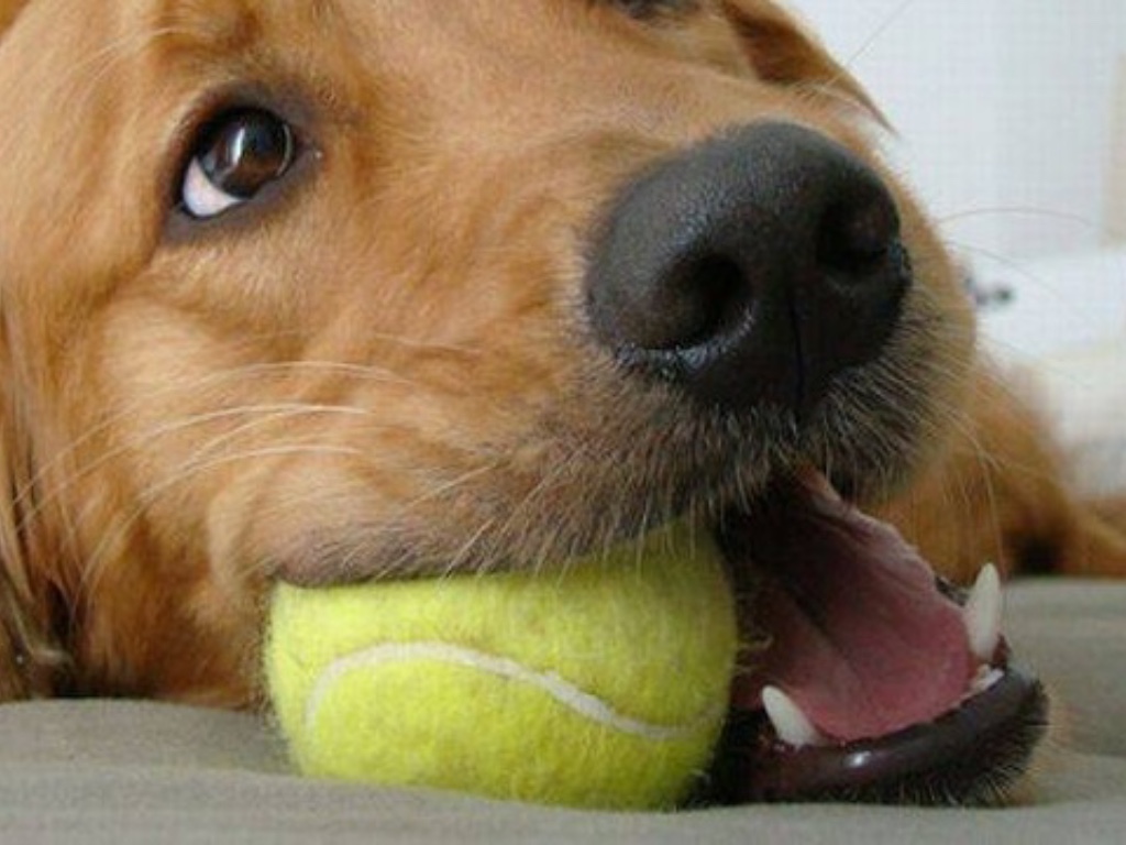 Most pet owners happily play with their dogs using tennis balls. While the surface is ideal for getting a good grip with the teeth, there is a danger in larger dogs for choking on the small ball.