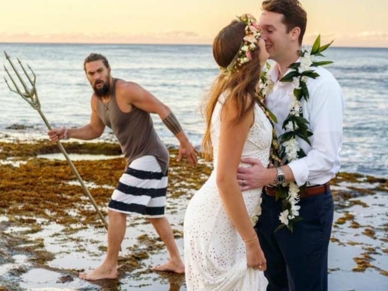 But having Aquaman himself jump in from the waves to be part of the moment… it’s hard to image topping that pic. He also did one with another couple – pretending to “steal” the wife away.