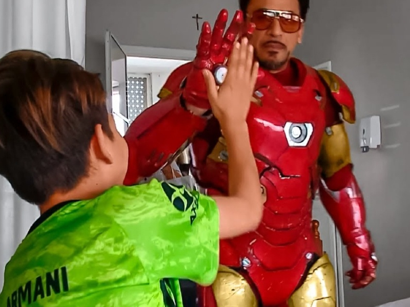Just when this kid thought he was getting a family visitor, his favorite super hero comes in!