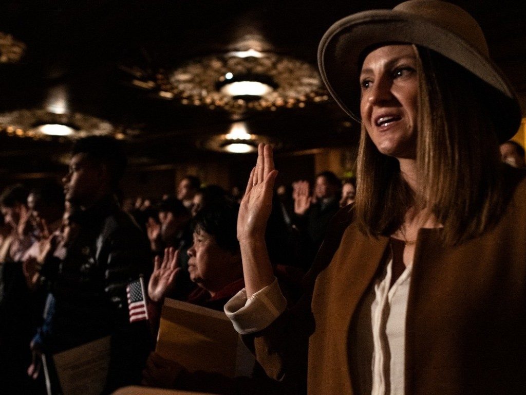 The oath ceremony is no small thing. Attendees are given a talk about the responsibilities of US citizenship. They recite the pledge of allegiance. They sing the national anthem. All is well for a moment in time.