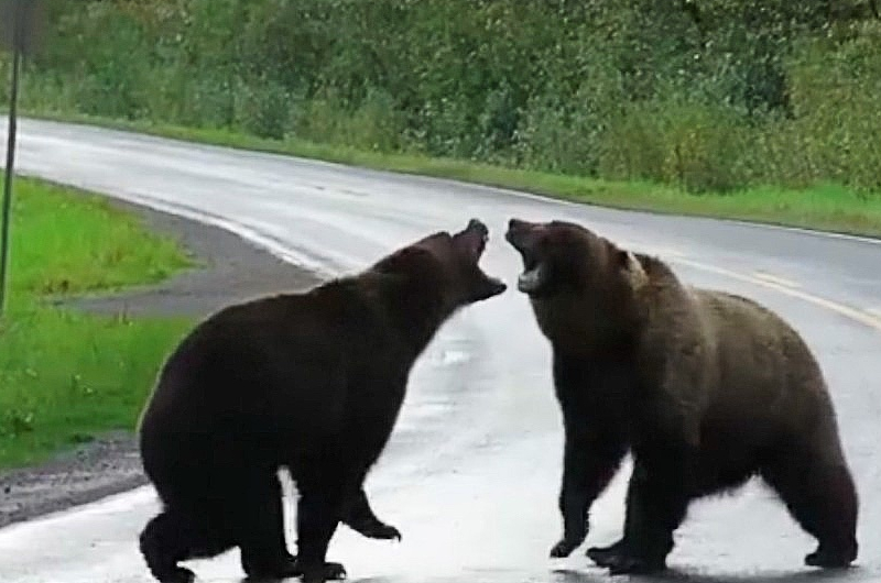 During mating season, big boy bears don’t care where they get into battle. The Department of Natural Resources and Protection has endless house of wildlife footage from trails and highways.