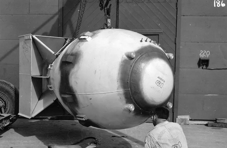 What you see right here is known as “The Fat Man”, the nuclear bomb that was dropped on Nagasaki on August 9, 1945, which was during the last few weeks of WWII. This was the second of the two atomic weapons that have ever been used in history.