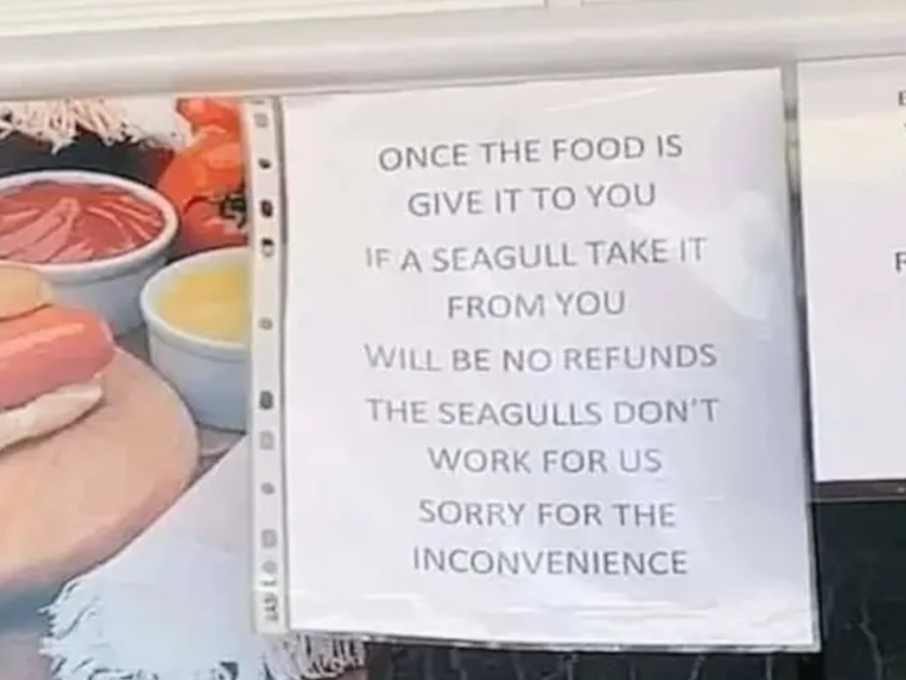 But yes, the sky-poop-bombers are relentless with food – especially French fries. But aside from the generally funny image, the spelling booboos are grin-inducing as well.