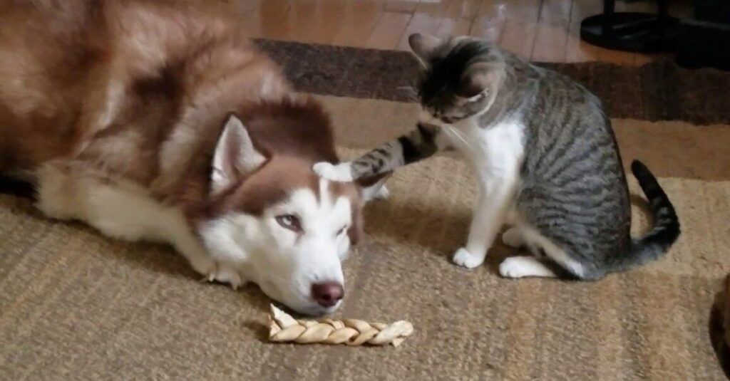 This cat shows no mercy! The best part about having siblings, after all, is the confrontations that build your character! However, we’re not sure if this big doggo knows it’s four times the size of its big sister. Her submission to this bossy cat is hilarious!