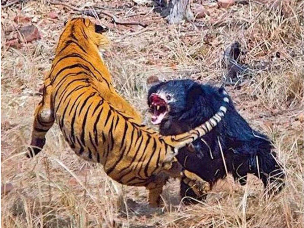 This image of a tiger and a sloth bear fighting serves as a reminder to all of us of the brutality of the animal kingdom. The fight began over the sloth bear attempting to steal away the tiger’s cub, which is a major no-no, and was observed by Akshay Kumar, the head naturalist at Bamboo Forest Safari Lodge in Maharashtra. The fight left both animals hurt, but the bear took less damage because of its thick fur.