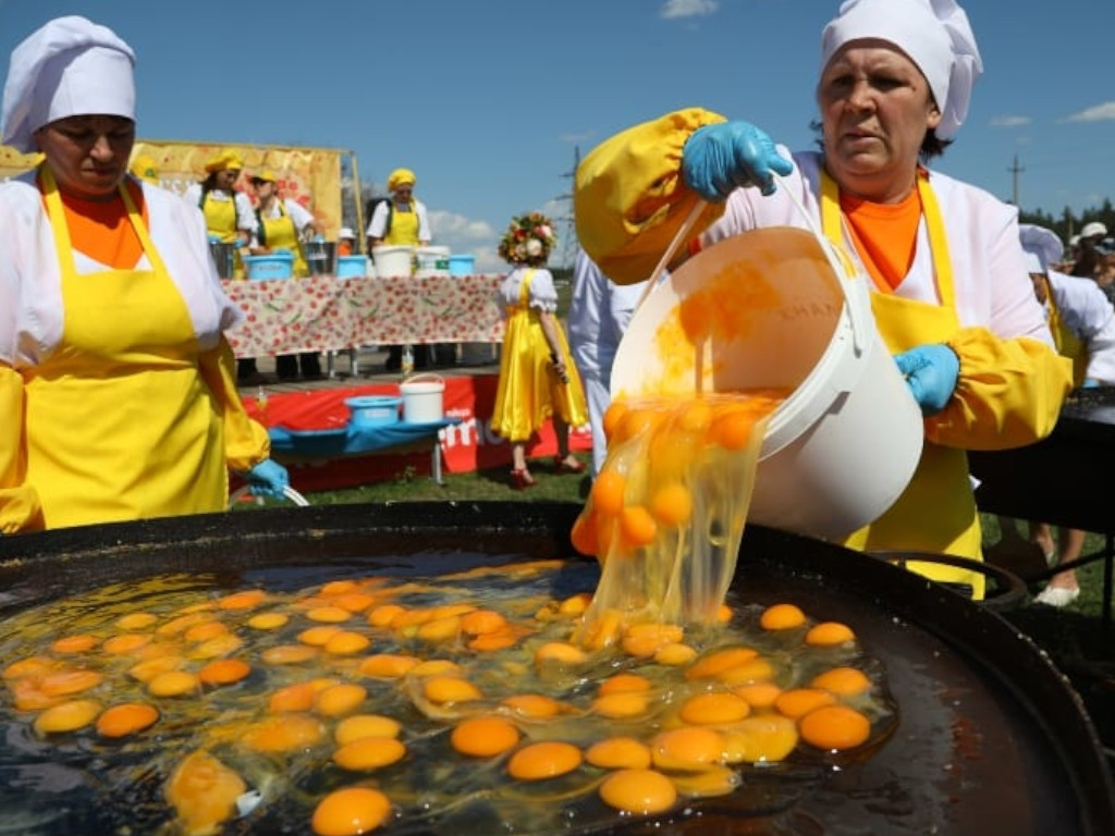 In this photo, we see a chef adding more raw eggs into an enormous frying pan so that he can cook Russia’s largest fried egg meal in the town of Novy Oskol, Belgorod. This batch consists of 7,000 eggs that are being fried in a 2-ton egg pan.