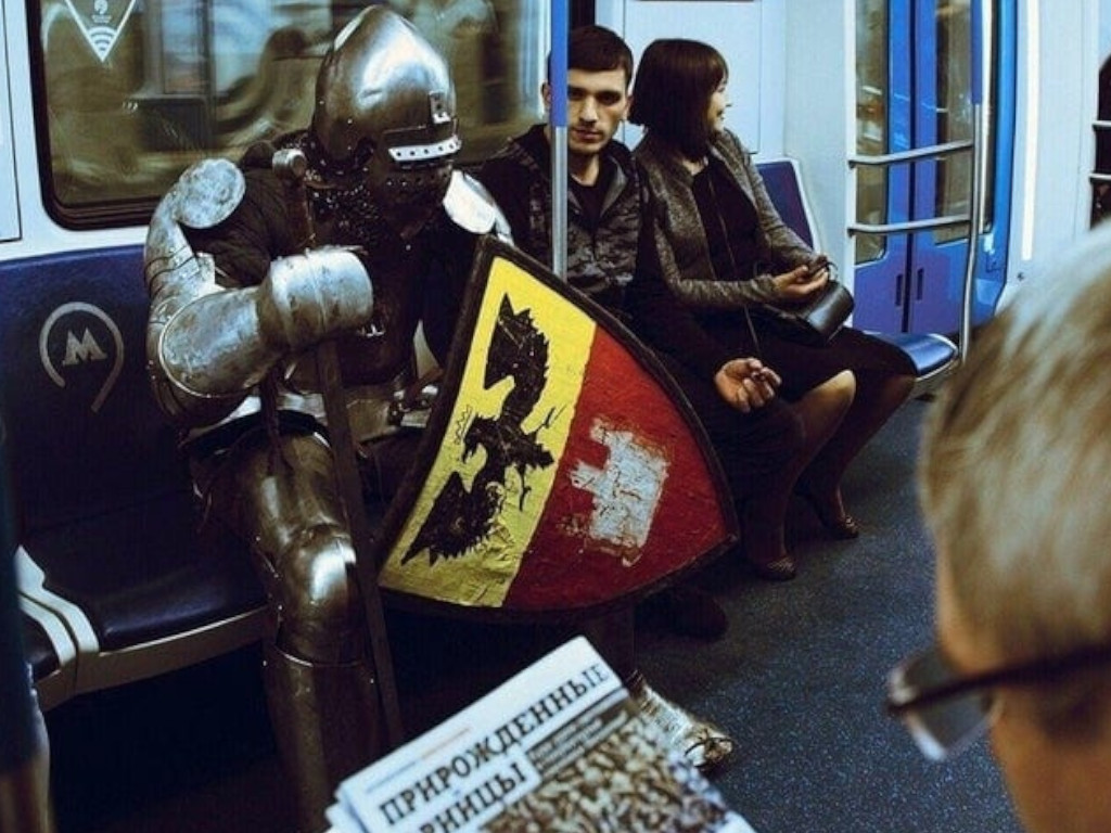 Much like the New York City subways in the Western world, Russian subways can get pretty weird. So you never know who you’ll run into. You might even get to meet a medieval knight on your way to work.