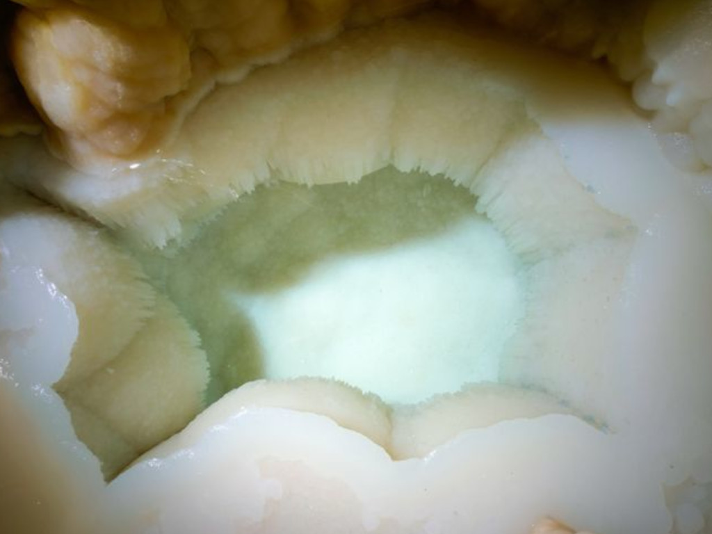 The Kansas City Star article claimed the water in the pool was “thick lime yogurt,” but Wisshak later claimed that the water was “crystal clear.” It only appeared to be like thick lime yogurt because of the lighting in the cave. As far as the pool’s “white frosted rock,” Wisshak explained that it was just barite crystals. But why had they been told not to let human skin touch the pool?