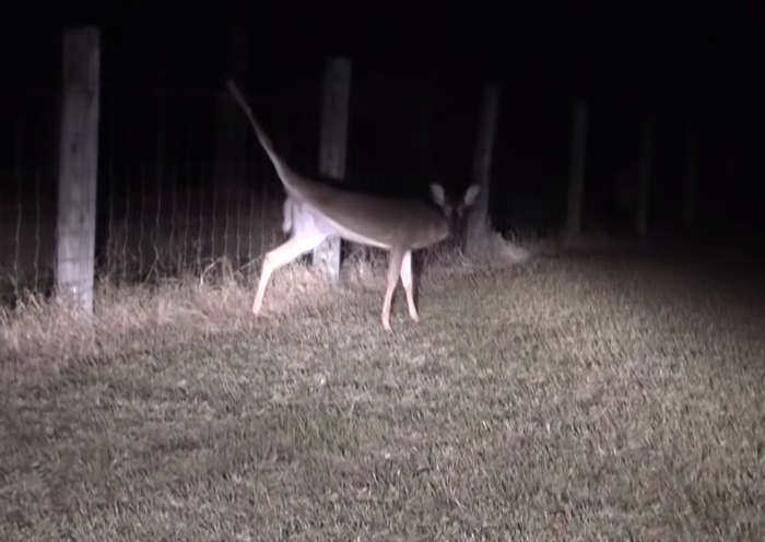 To the hunter’s surprise, a deer somehow got stuck in a fence. The animal probably tried to jump over it and since it’s late at night, it didn’t see just how big the fence was. The poor animal had no way out.