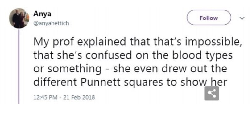 Lydia continued to tell her class what her mom had told her: she had kept what had happened a secret for her daughter’s entire life. She revealed that the reason why Lydia’s blood type was AB was because she had had an affair with her husband’s step-brother. Then, it hit Lydia like a ton of bricks. The man who she had thought was her step-uncle was really her biological father, and the man who she had thought was her biological father was really her biological step-uncle!