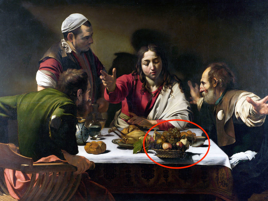 When Italian Baroque master Caravaggio painted the “Supper at Emmaus” in 1601, he may have been alluding to the time Jesus fed fish to the masses. The hint of this is in the shadow cast by the fruit basket on the table that looks an awful lot like a fish.