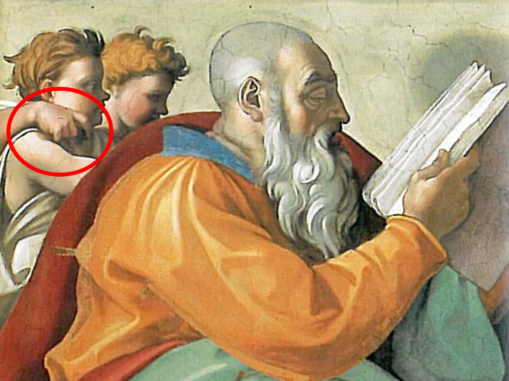 Michelangelo’s “The Prophet Zechariah” is illustrated in the Sistine Chapel and shows two cherubs glancing over the prophet’s shoulder. But a closer look shows one of the cherubs with their thumb between their index and middle fingers. In those days, this was the equivalent of flipping someone the bird.
