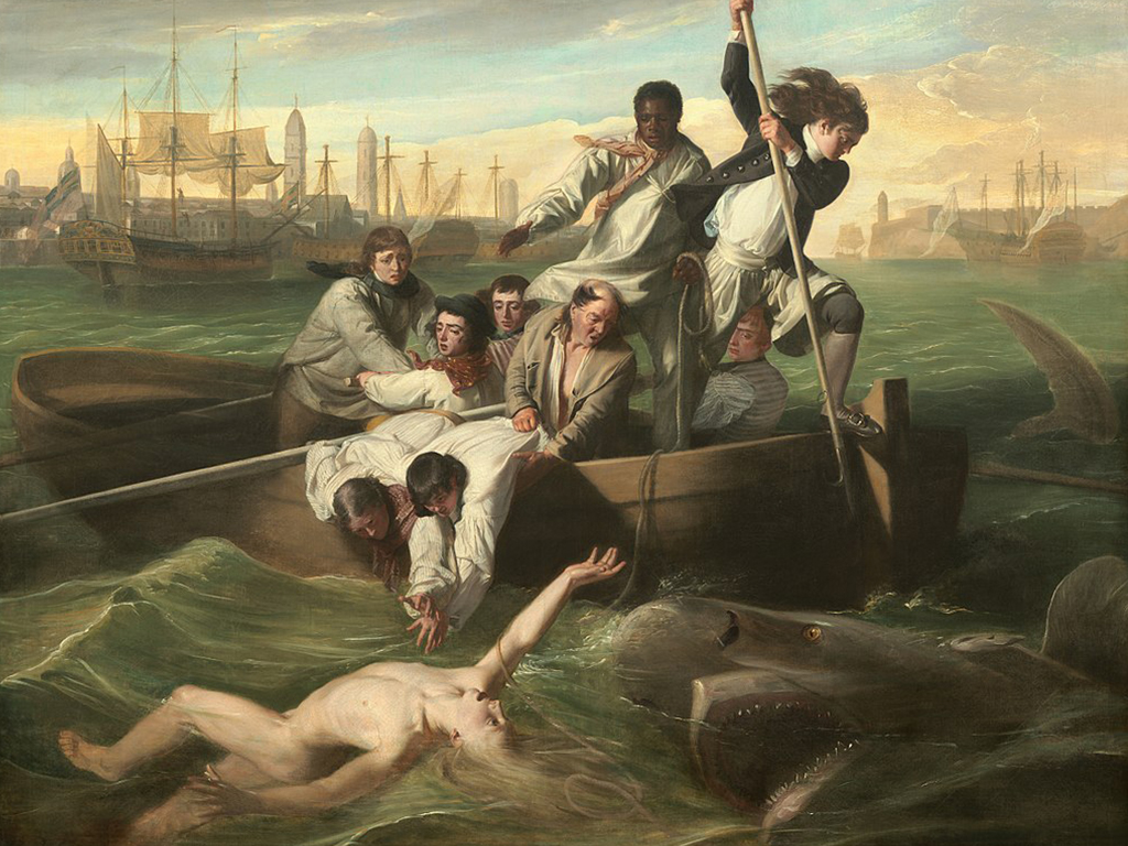 John Singelton Copley’s 1778 painting “Watson and the Shark” shows a 14-year-old cabin boy named Brook Watson being rescued from a shark attack in the waters near Havana, Cuba, in 1749. Unfortunately, it took three attempts to rescue Watson, and he lost his leg in the process.