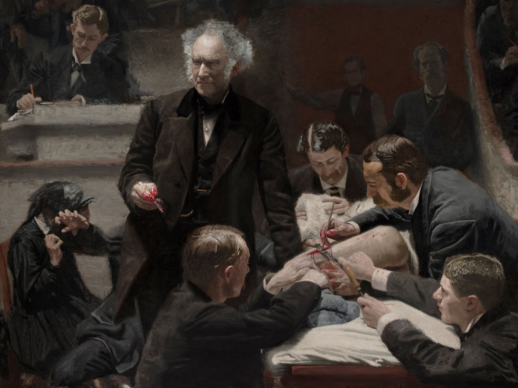 The 1875 painting “The Gross Clinic” was inspired by Thomas Eakins’ witnessing of a surgery where Doctor Samuel Gross tended to a man’s infected femur with conservative surgery as opposed to amputation. The woman recoiling on the far left was the patient’s mother.