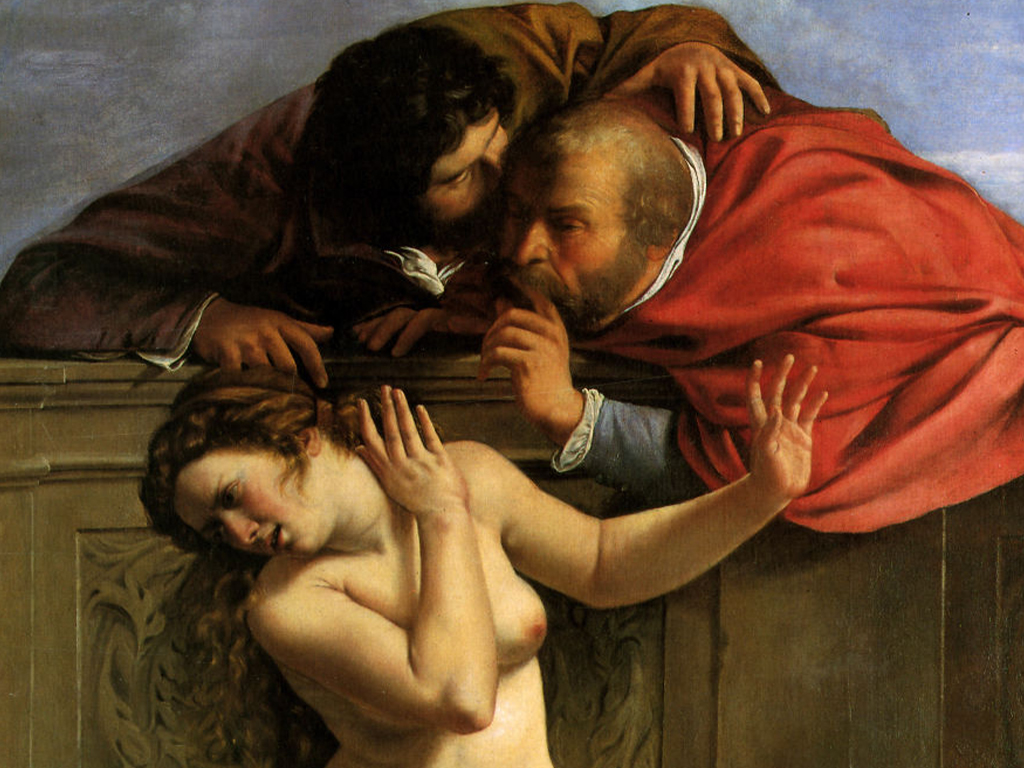 Artemisia Gentileschi’s 1610 painting “Susanna and the Elders,” has Susanna in the batch looking very uncomfortable as two men gawk over her. The painting is based on a scene from the Book of Daniel where Susanna refuses the requests of these two men, and they retaliate by ruining her reputation. Fortunately, a man named Daniel shows up and clears her good name.