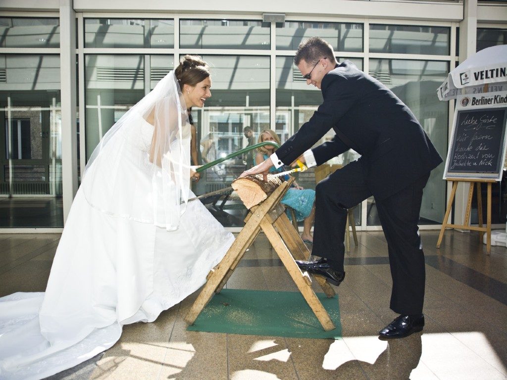 No relationship is without obstacles. The sawing of the log, which the bride and groom do together, is meant to be the first obstacle the couple overcomes. Talk about a lot of pressure! It’s no wonder the couple above chose a log that was already quartered.