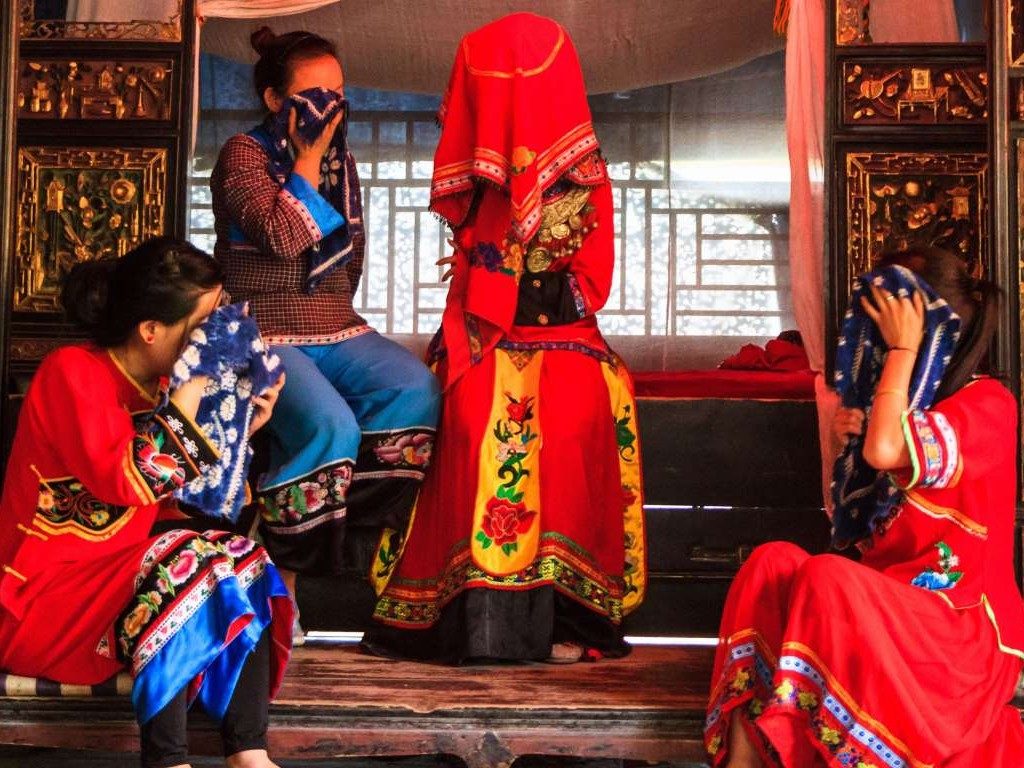 It’s not unusual for weddings to bring on tears. For the Tujia people, however, it’s expected. A Tujian bride is expected to cry for days before her wedding, and days can mean up to a month. Her mother, grandmother, sisters, and aunts may join her. Not only is there crying, but there are even crying songs to be sang. The crying, and the bride’s ability to sing crying songs, are a symbol of wisdom and virtue.