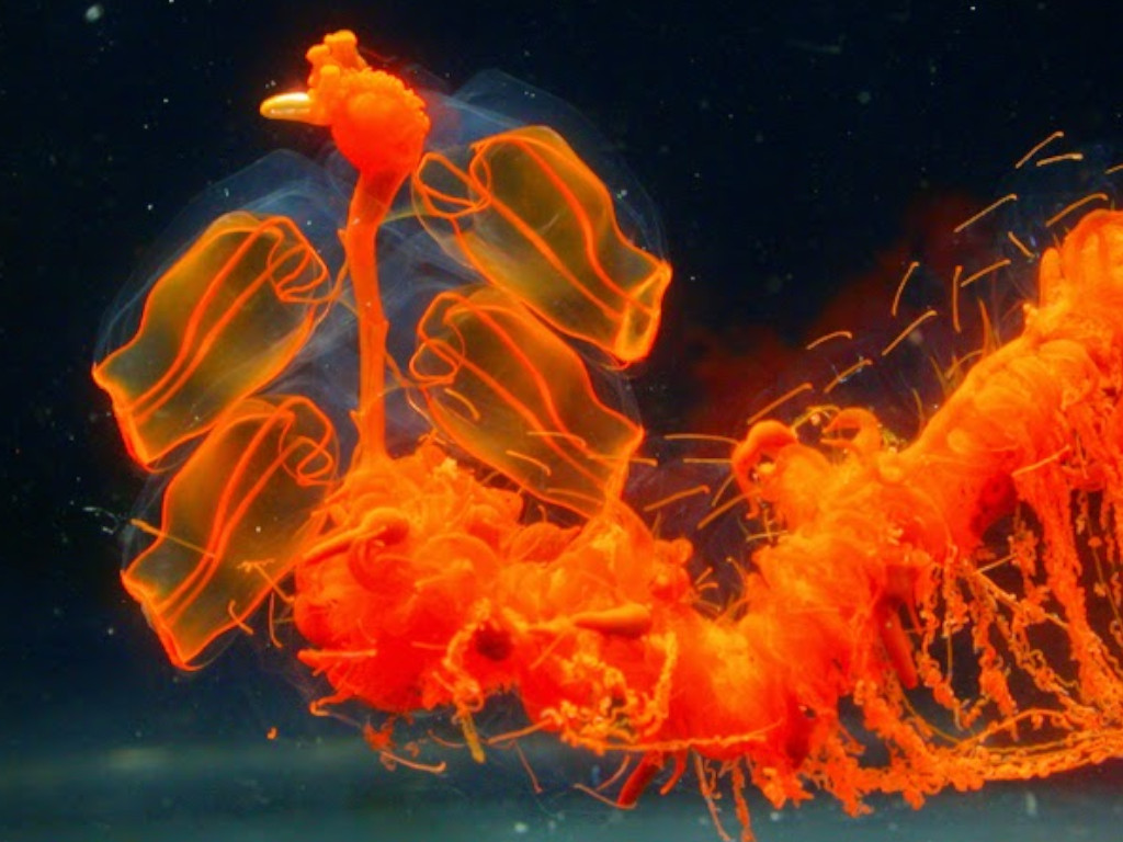 The marrus orthocanna is a group of zooids that link together to form a single stem. They’re created after a single fertilized egg is formed. Then, that creature will create genetic duplicates along the same biological stem. Once they mature, they work collectively to propel themselves across the water. They’re often found in cold waters like those of the northern Atlantic Ocean, the northwest Pacific Ocean and the Arctic Ocean.