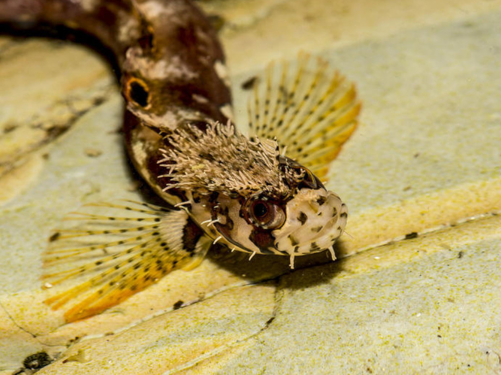 Don’t be surprised if you run into the Onespot Fringehead the next time you’re swimming in the Pacific Ocean near Mexico, San Martin Island, or Baja, California. These 9.8-inch-long sea creatures are plentiful around these water regions. And they live up to their name as they have fringe on the top of their heads. They also have lips that extend past their eyes and they have tons of conical teeth.