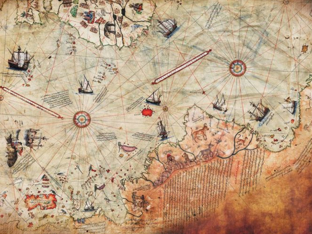 The Piri Reis map was created in 1513 by a cartographer named Piri Reis and it shows evidence of the Americas before they were discovered by Christopher Columbus. It’s also believed that Columbus may have used the map as a guide.