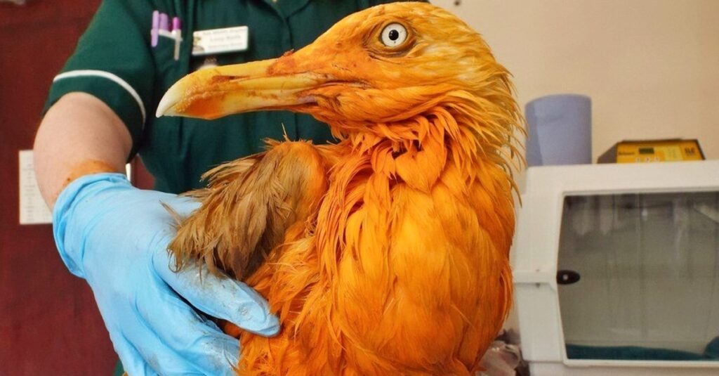 “When they called to say they had picked up an orange bird, we had no idea what to expect – and would never have guessed at this!” Tiggywinkles Wildlife Hospital posted on their Facebook page, accompanied by a photo of the strange-looking bird.