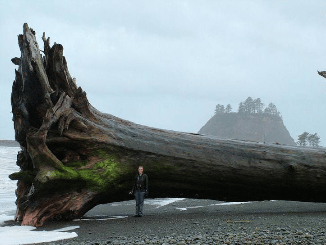 Driftwood is a fairly common sight to see on beaches. Sometimes quite large pieces of driftwood can be found on shore. However, it is rather unusual to find a massive tree like this washed up on shore. We can only wonder how a tree that size ended up in the ocean to start with, and how on earth it washed that far up onto the beach!