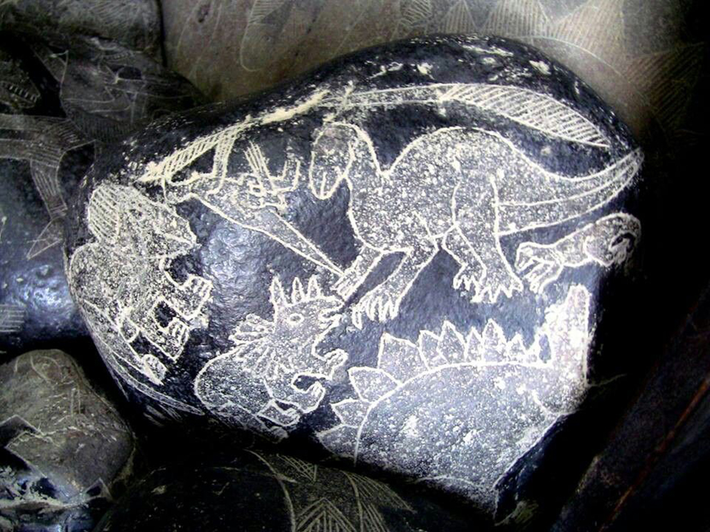 These stones, owned by a collector, look like any other carved stones from the ancient Peruvian civilization. But, they depict dinosaurs, which society would not have much knowledge of until the late 1700s. Some Ica stones have been proven to have been forged, but the origins of this one are still unknown.
