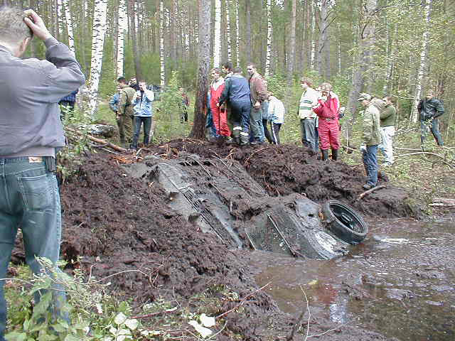 It has been hours since the bulldozer partially hauled that massive metal thing out of the muddy water and, clearly, everyone on site was tired.