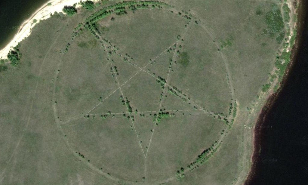 A recent source suggests the 366-meter-wide symbol could be a relic from the Soviet era. Originally built in the shape of the Soviet star, the pentagram was the outline of an ancient park, according to local archeologist Emma Usmanova.