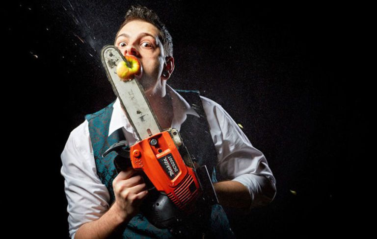 This man is a performance artist named Johnny Strange and he has a rather ‘strange’ talent. He holds the record for the most apples held in own mouth while being cut by a chainsaw in one minute which is eight apples.