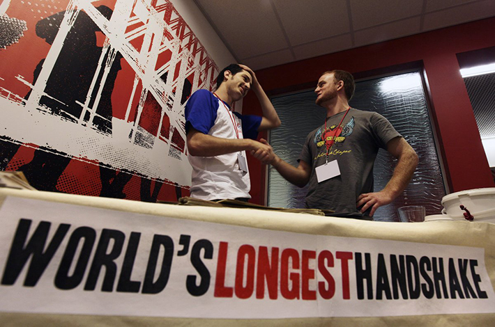 The Strangest Guinness World Records That Will Never Be Broken AgainBy Harvey Shepherd / June 22, 2019 1. The Longest Handshake atchuup.com We want to end things with something really interesting. Jack Tsonis (left) and Lindsay Morrison (right) hold the record for the world’s longest handshake. Pages: 1 2 3 4 5 6 7 8 9 10 11 12 13 14 15 16 17 18 19 20