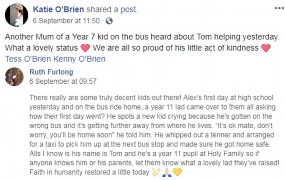 It wasn’t long before Tom’s act of kindness reached Matthew Syme, the head of the school. He was delighted that Tom and his friends had shown such compassion. “It is just lovely and at the start of the year it really sets the tone for everyone else,” he said. Then, he made a comment about Tom’s character.