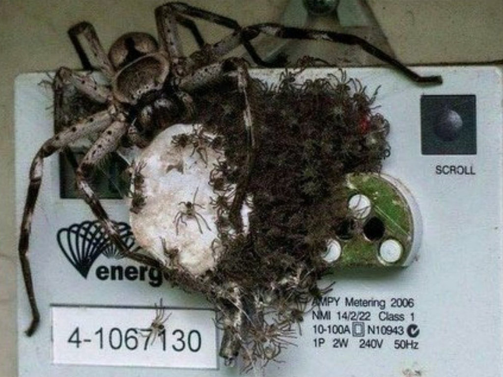 Think of how much money the people living in this Australian home will save thanks to this massive spider that’s literally nesting on top of an electricity meter? We pity the fool who has to read this thing.
