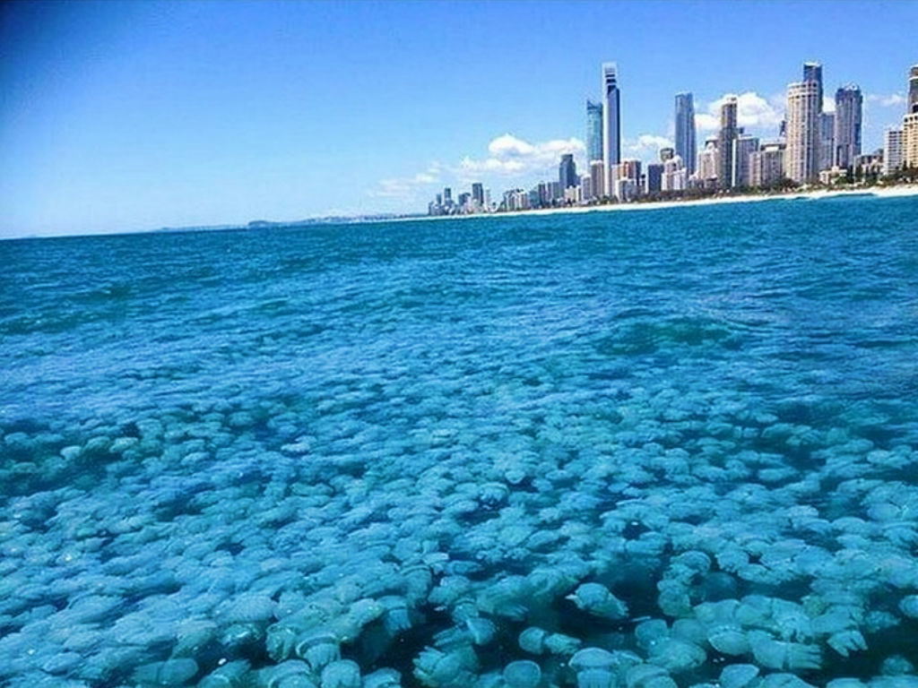 What’s that in the water around the harbor? Why, thousands upon thousands of poisonous jellyfish, of course. Maybe don’t do for a swim here.