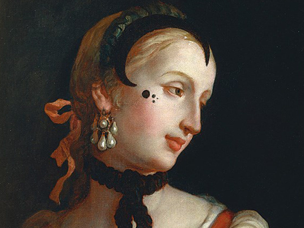 In the 18th century, people stuck beauty marks to their faces and they came in all sorts of shapes and sizes. Some of them looked like moles, but others looked like a horse and carriage as well as hearts, moons, and stars.