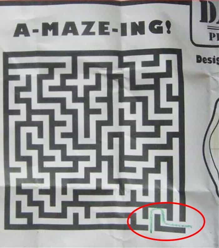 The fun thing about a maze is trying to figure out how to get out of it. It’s a workout for the brain and it can test how sharp you are. But there’s nothing more annoying than finding a maze with glitches in it. This particular work of art ensures that the task is over before it even starts. Frustrating much?