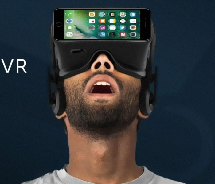 We’re all for new experiences and all that virtual reality has to offer, but we’re not sure that we’re missing much if all this device has to offer is the darkness of the back of a phone. But it does beg the question, why is this man’s mouth open in wonder. Has he never been in the dark before?