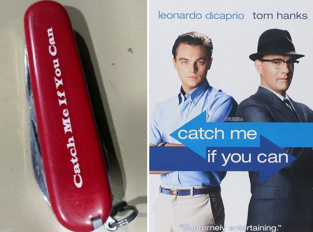 TSA officials have found a lot of pocket knives, but this one was more special. The phrase “Catch me if you can” comes from the Steven Spielberg movie where a con man poses to be a Pan Am pilot. And the irony is it was ‘caught.’ It was probably… “supremely entertaining” as well!