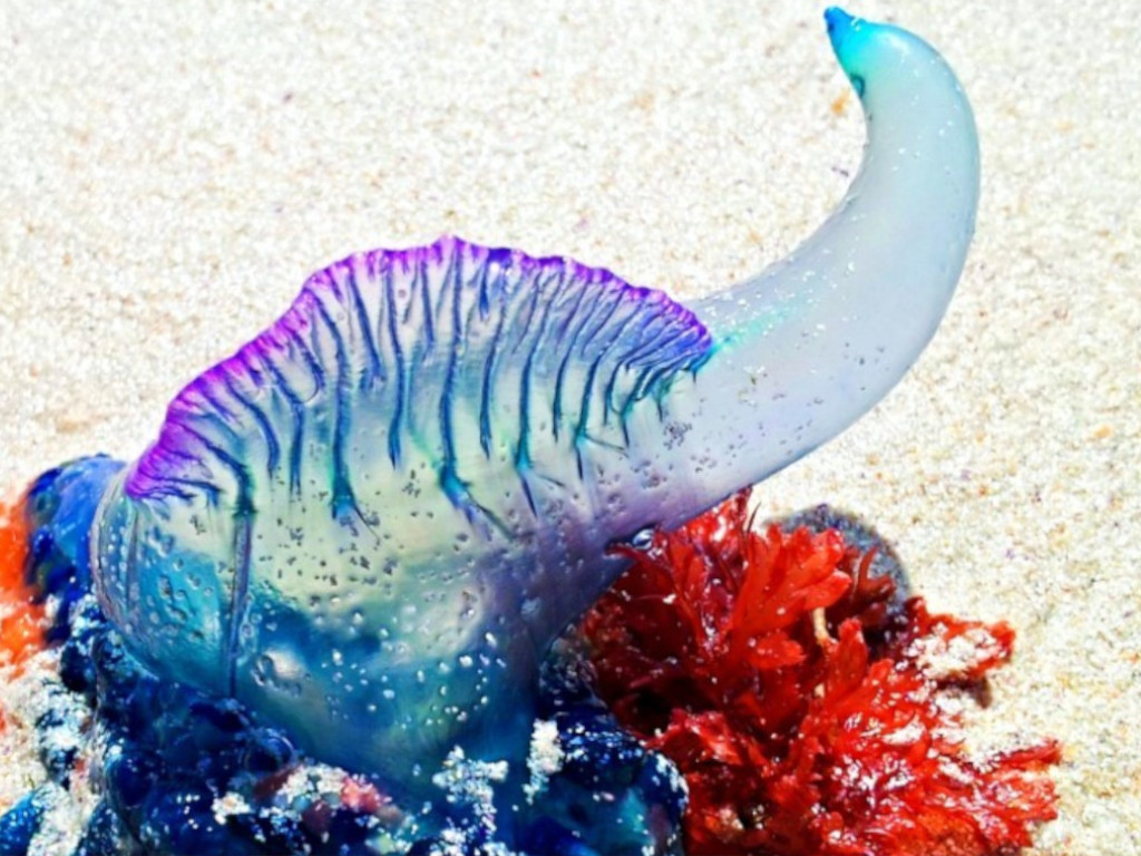 The Portuguese man o’ war has four separate polyps, one of which is a gas-filled bladder that sits above the sand or water. And their long, thin tentacles can extend 165 feet and contain nematocysts full of venom that will paralyze or kill fish and other animals. In people, the sting will produce horrible pain but will rarely kill a human.
