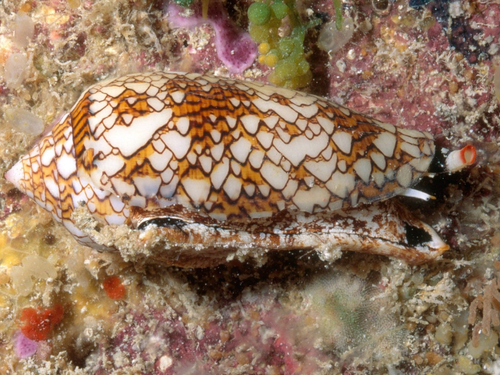 The cone snail is found in the tropics’ warm waters, but you better think twice before grabbing one of these brown and white marbled shells. They have harpoon-like teeth that contain a venom known as conotoxin. If they get you, the toxin will stop nerve cells from communicating, so you better rush to the hospital fast. But fair warning, there is no antivenom.