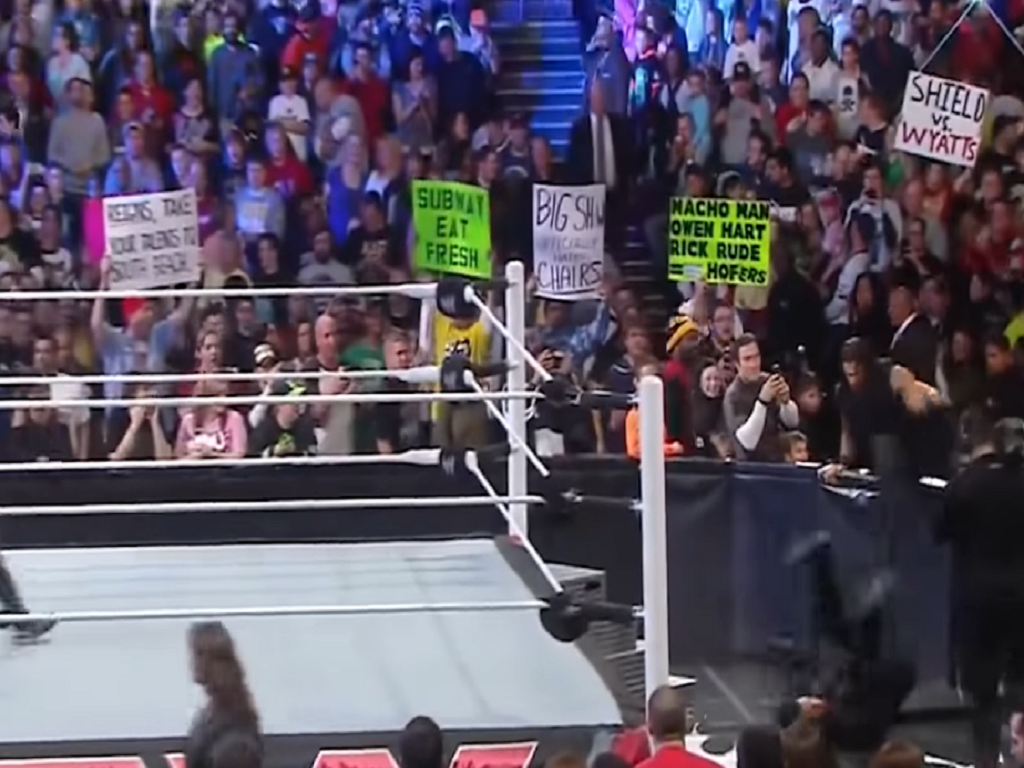 The problem with coming through the crowd is that the wrestlers need to jump over the surrounding fence. Well, one of the members is not that good at jumping fences and he fell straight on his butt one time!