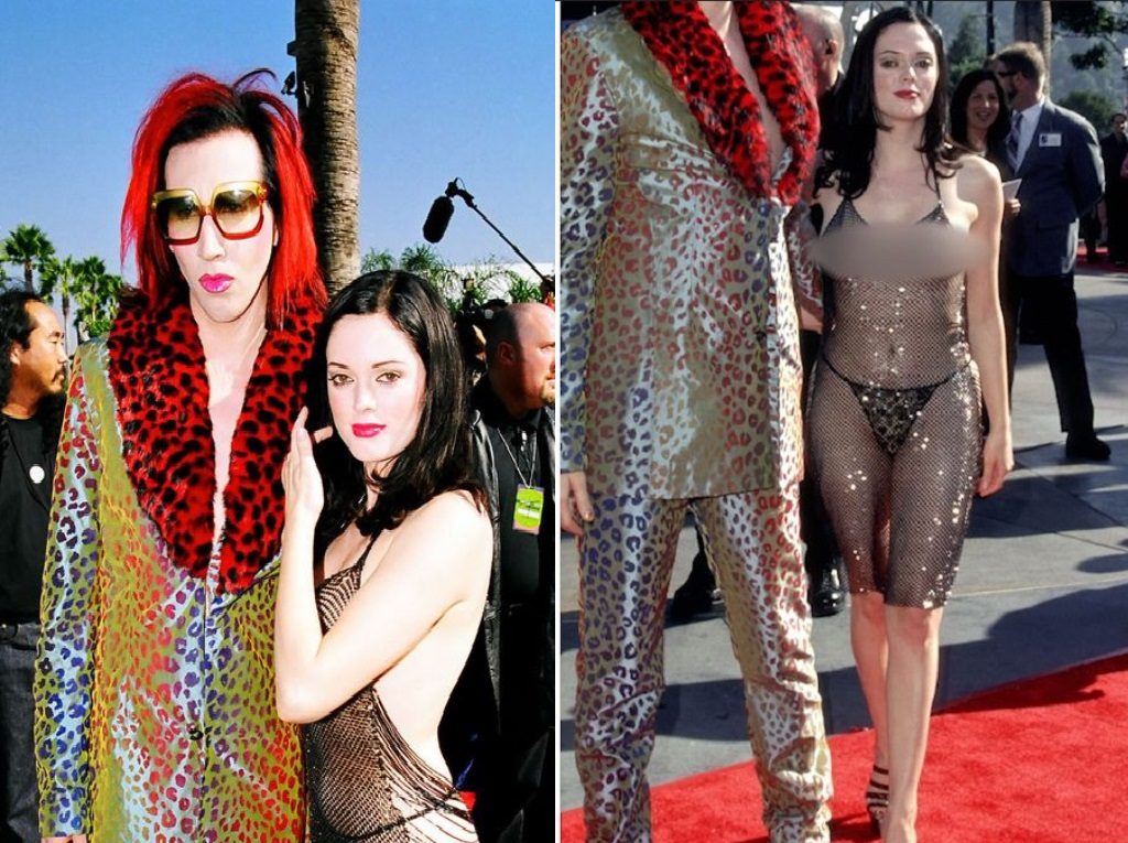 We said there’s going to be some nearly naked celebs out here! Actress Rose McGowan walked around with her ex-fiancé Marilyn Manson wearing a few strings as a dress. All eyes were on her and the critics did not spare her bad choice of… or lack of outfit!