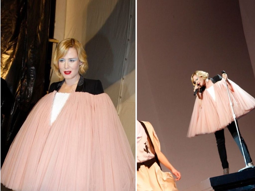 Roisin was pregnant at that time when she performed at Viktor & Rolf’s spring/summer 2010 show. They made her a giant tutu jacket that just confused the heck out of everyone, especially since the singer was on top of a huge stage.