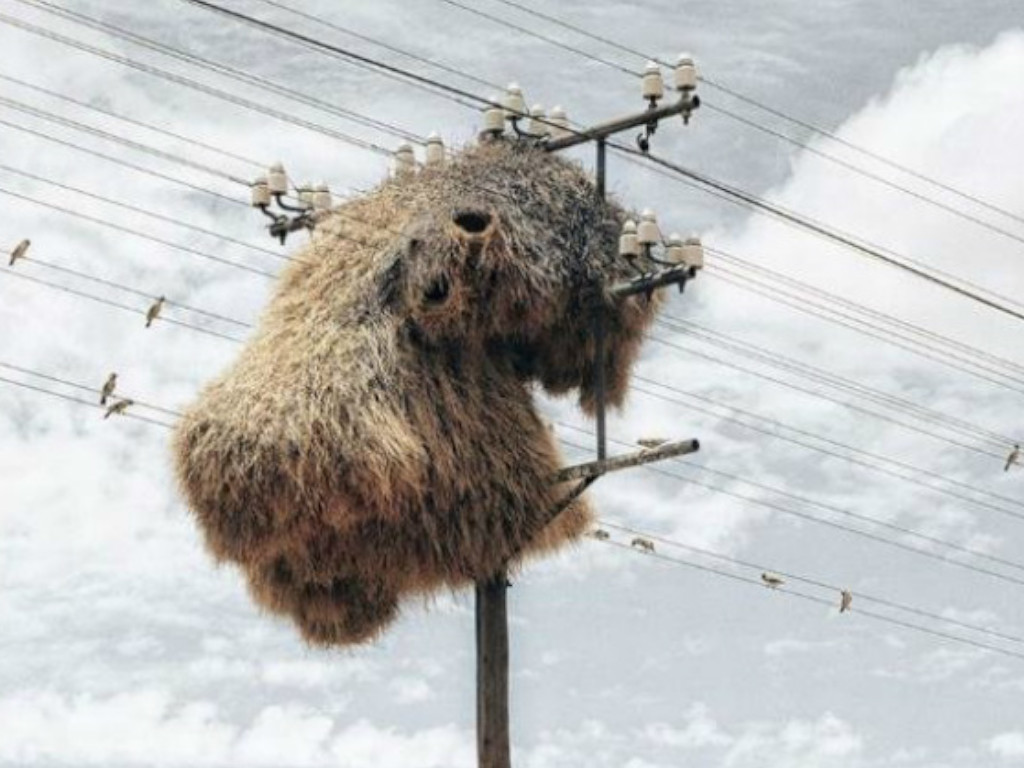 It might look like a moose head, but it isn’t. It’s not some sort of artwork dangling over an electric pole either. This is actually an elaborate bird’s nest located in the Kalahari Desert. Who knew that birds were so artistic with their nests?