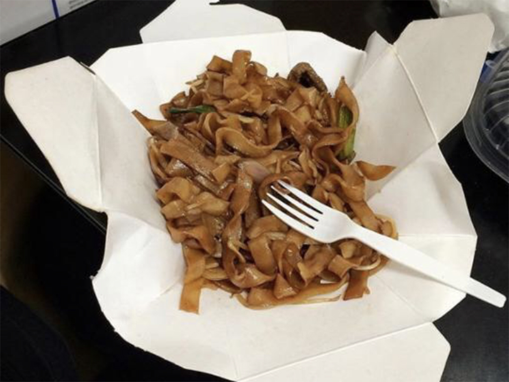Most people eat directly out of Chinese take-out cartons, not knowing this handy trick. If you unfold the sides of the container, you can use it as a plate, making it easier to share with your friends.