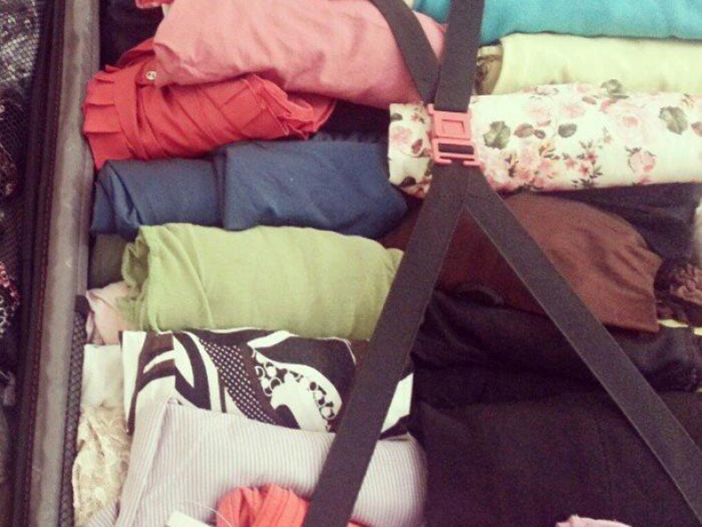 If you’re a person who frequently has trouble getting your suitcase to close, you should try this out. By rolling your clothes up as tightly as possible, you can get all of the space out of your suitcase that would usually be taken up by air. Best of all, you can actually see all of your clothes at once when you open it up.