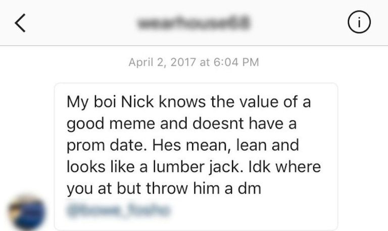 Her post went viral, and before she knew it, she started receiving messages from users, and one message, in particular, has caught her eye. A young gentleman sent her a DM where he suggested her to message his friend. “My Boi Nick Knows the value of a good meme and doesn’t have a prom date. He’s mean, lean, and looks like a lumber jack. Idk where you at but throw him a dm.” As Lilly put it, “Who says chivalry is dead?”