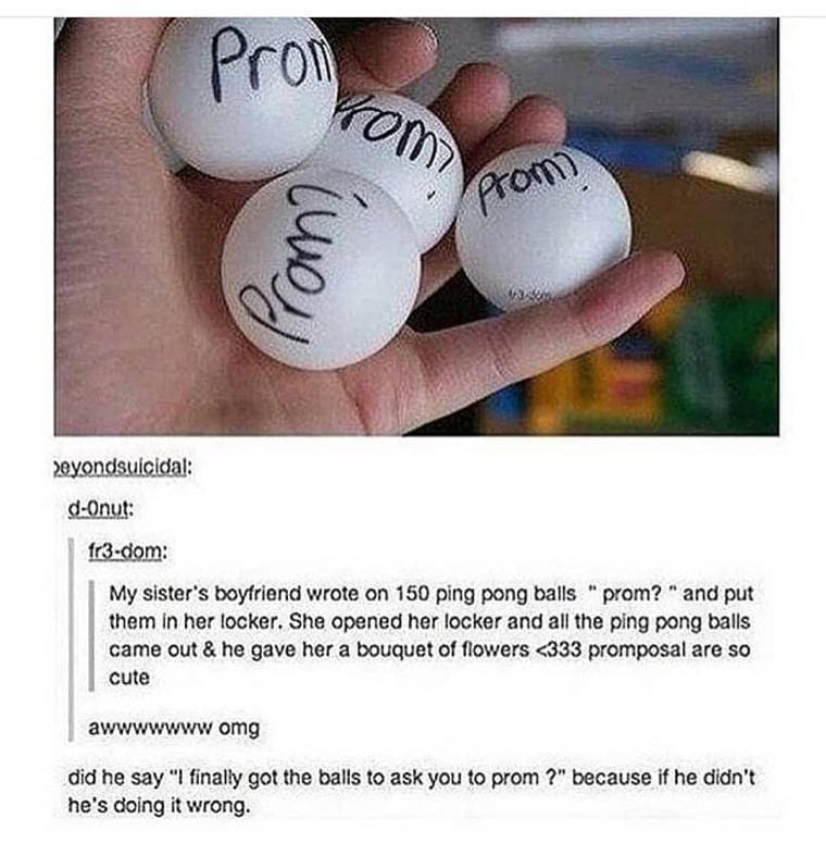 One determined guy took the time to write “Prom?” on hundreds of ping pong balls, which he put inside his date’s locker. Imagine opening a locker and watching hundreds of ping pong balls spilling out of your locker room? Definitely not something you would expect to see inside your locker. Let’s hope the girl found his idea sweet! Otherwise, that must have been embarrassing for both of them.