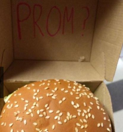 Someone was lovin’ it when they opened the box. If your date really loves McDonald’s, then you can use this guy’s idea! He brought her a big mac with the words “Prom?” written inside the box. Even though this idea is much better than the orange one, it still looks like he probably thought of it in the line at the drive-thru. Let’s hope the girl was impressed by it and hopefully said yes!