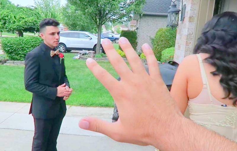 It is considered a tradition for the boy to wait outside the door and wait for the girl to come out to see what she looks like before heading off to prom. But because Parker wanted to know what Adriana picked, he insisted on seeing her dress. When she showed him the dress she was going to get, he wasn’t happy because it was a cheap dress.